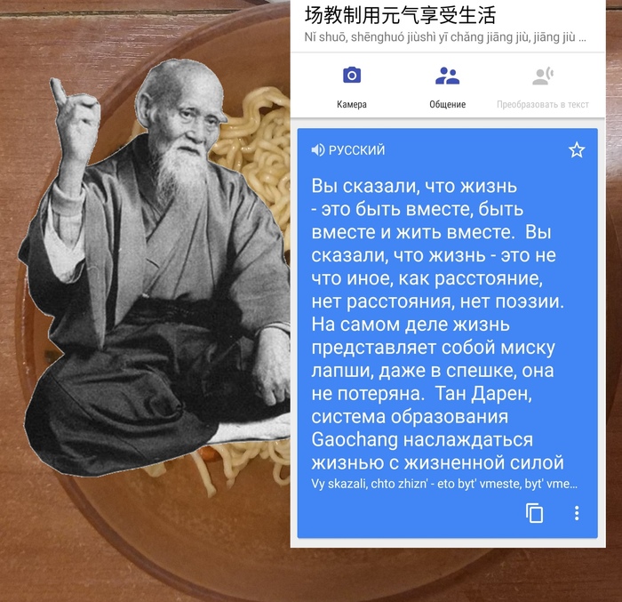 Итак, на обзоре китайская лапша высшего качества (судя по цене), которая, по всей видимости, была завезена контрабандой (на русском ни единой буквы). Полчаса я переводил каждую надпись на пачке в поисках способа приготовления, но нашел лишь цитату (а с ней и понятие о сущности бытия), состав всего чего только можно, адрес производителя и все. Уже было решился приготовить лапшу не по канону, но оказалось рецепт был на пакетиках с приправами. Перейдем к обзору.