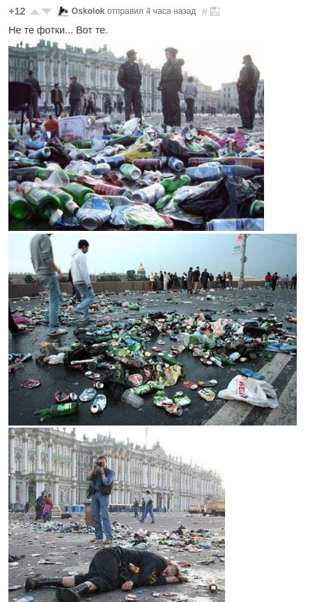 Ну и новости, типа "После "Алых парусов" из города вывезли 600 кубометров мусора" будоражат кровь поборников чистоты и прочее небыдло.