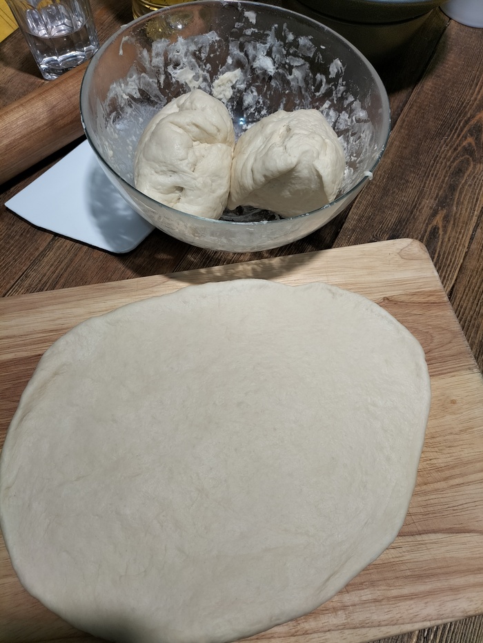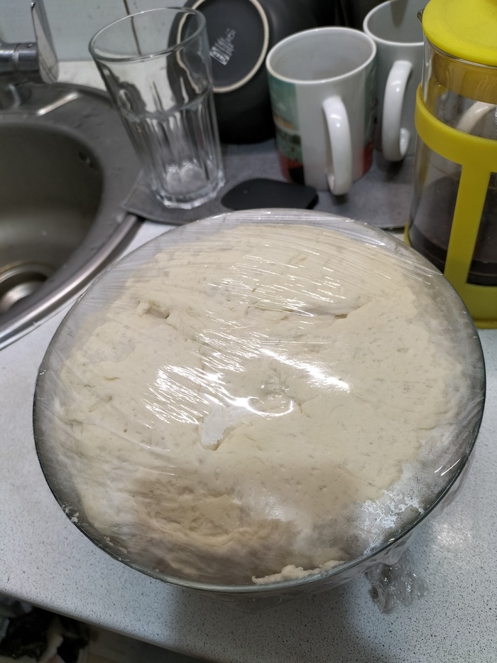 Месим тесто, оно липнет очень, мну впервые, но я рукастый.