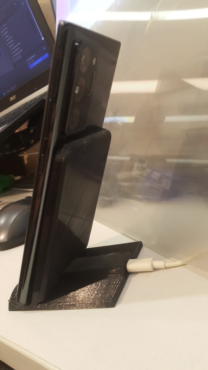 Запускаем ее в печать и получаем идеально-эргономично сложенную подставку, чобы прям камерами не цеплять и угол удобный и прорезь внизу сделал чтобы все смахивать вальяжным жестом.