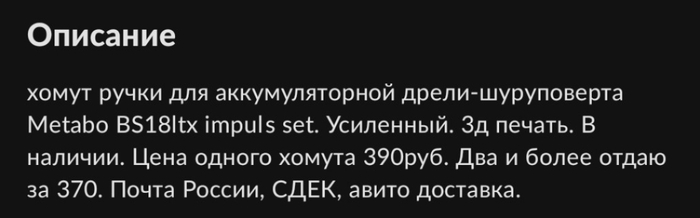 Эх 3д печать моя, печать. Печатать люблю! Печатать люблю пиздец! Печатал бы круглыми сутками, печатал бы, печатал бы и печатал бы, хоть бы весь в хотенд залез, только чтоб голова торчала! Так вот о чем я, в этом посте не будет крыльчатки, вот такое вот внезапное начало, а будет что? Будет хомут для шуруповерта metabo ltx