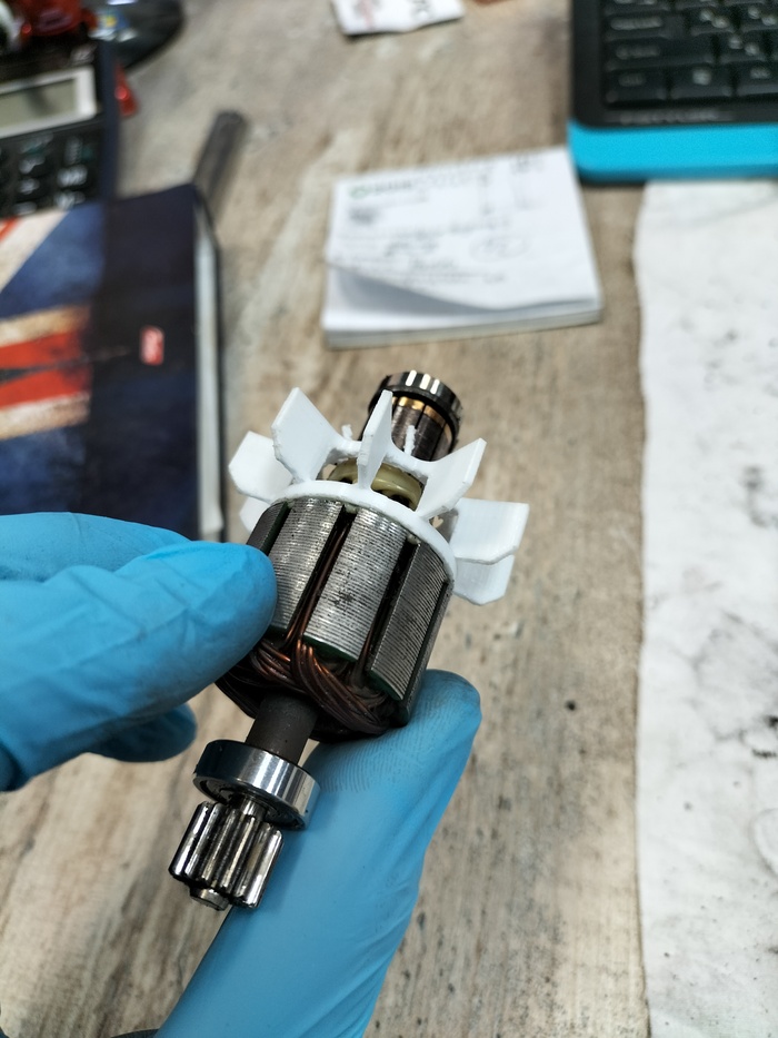 Как говорится: "ты нет, а он смог..." Вашему взору будет представлена.... Вы уже понимаете о чем, не правда ли? Эта будет снова крыльчатка. Да, да. Меня больше не остановить, я стану самым крыльчаткоопытным печатником всея Руси! Ну ближе к делу. Дали мне в ремонт шуруповёрт Макита какой-то там, мол шум внутри как у киндера, трясешь и появляется чувство, что внутри будет охуительная игрушка, типа фигурки бегемота или там динозаврика. А на деле получаешь всратые пазлы со смурфиком. Так вот, разобрал я этот шуруповерто-киндер. А внутри и правда ебучие пазлы, только без смурфика. Вывалились на меня лопасти примерно так.