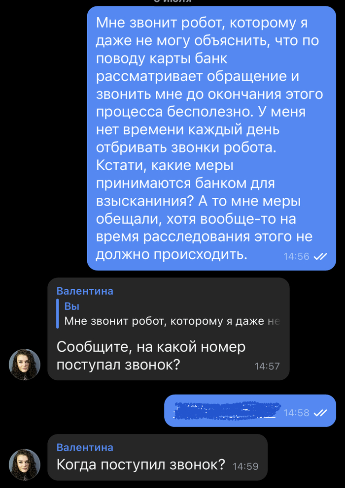 Проходит несколько дней, ТБанк снова звонит по вопросам долга. Я спрашиваю, какого