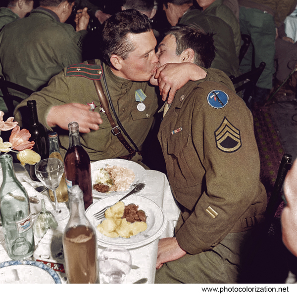 41 kostas26 Моя колоризация 8 лет назад "Поцелуй Дружбы - русский и американский солдат - Германия 1945" Показать полностью 2 [моё] Колоризация Победа Великая Отечественная война Союзники Поцелуй