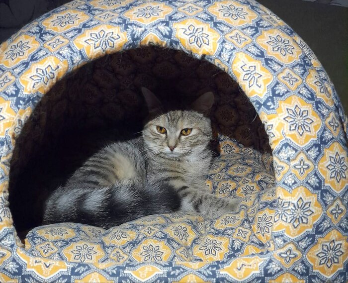 Волонтёр подготовила Альфу к переезду домой полностью. Девчушка в совершенстве владеет когтеточками, лотком с наполнителем, здорова и стерилизована.