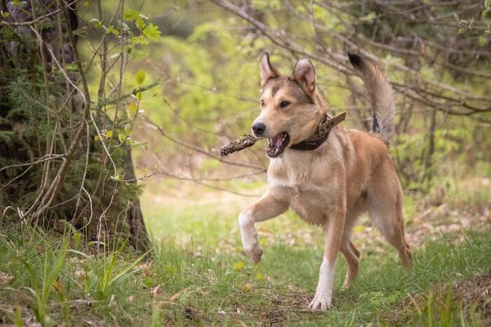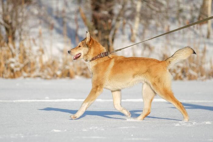 Она отлично ходит на поводке, не тянет, терпит до выгула.