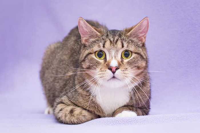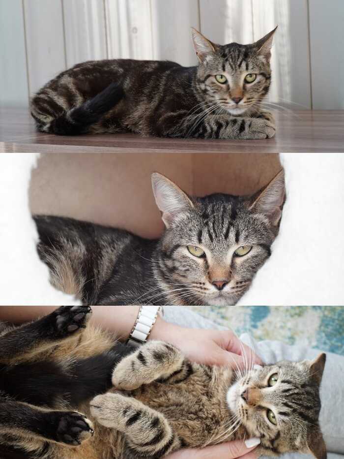 Это оказалась прекрасная здоровенькая девочка, таби с красивыми рыженькими кляксами на пушистой шелковой шубке, то есть трехцветочка, с глазами цвета тёмного ореха, шоколадными, с круглыми щечками, близкого метиса британской породы. Волонтёр назвала её Верочкой, за бесконечную Веру в людей и Доверие к ним. Счастье, что её никто не успел обидеть, и она не пострадала!!!