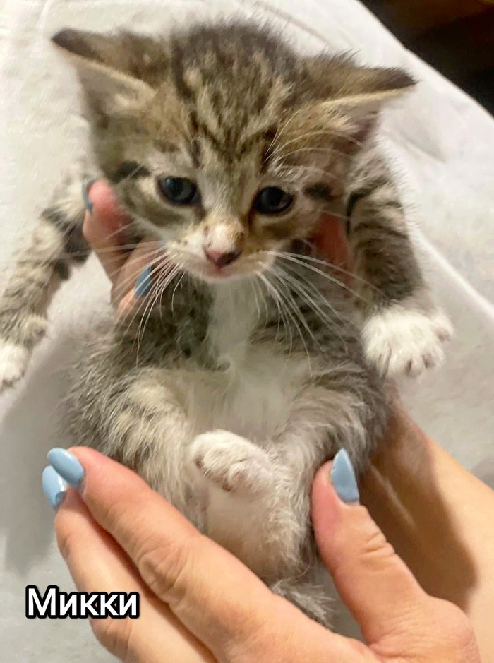 "Подойти, спросить? Или нет, все нормально?"- мысли крутились у волонтёра в голове. Решила подойти, спросить, чья кошечка. Её опередили вопросом - "Кошка не нужна? У нас и так двое". "Нет, своих много. А эта -не ваша?" Ответ: "Нет, видим первый день, из-под машины утром вылезла". Решение было принято молниеносно. Надо забирать. Пропадёт на улице такая доверчивая малышня. Плюс уже неделю волонтёр ночами слышала на улице горький плач какого-то котенка. Выходила, искала, кискала и светила фонариком, но никто не откликался.....