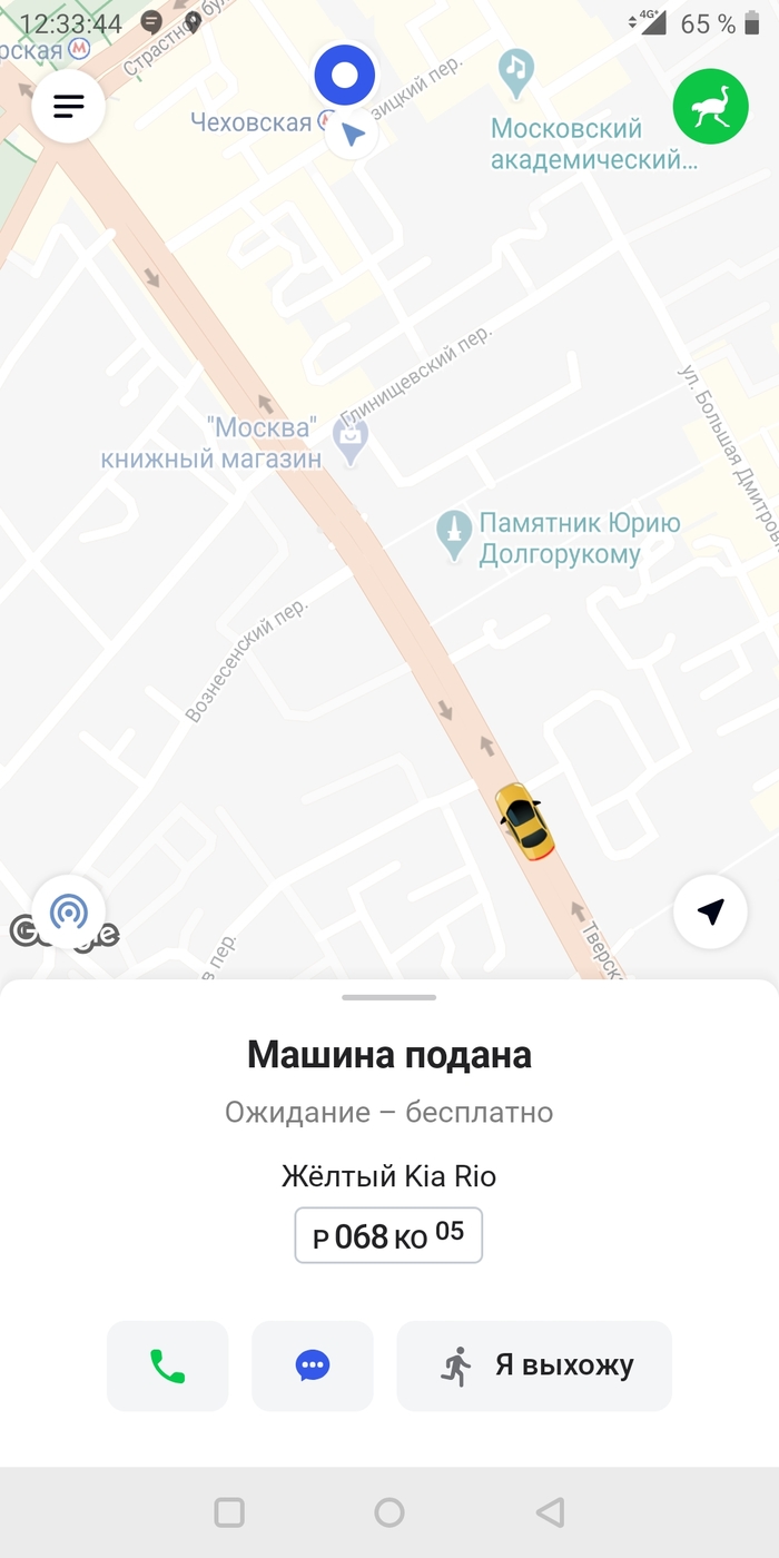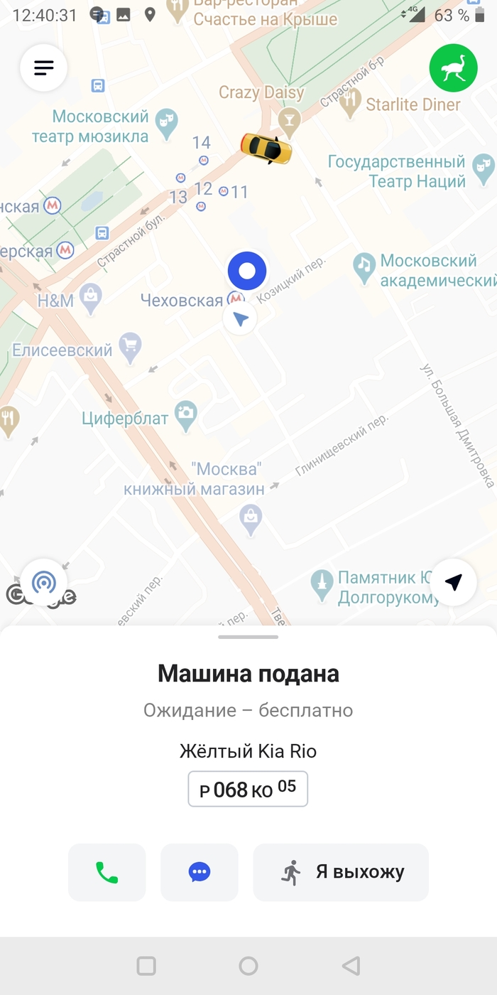В субботу вечером вызвали такси в центре Москвы. Водитель поставил ожидание раньше, чем прибыл на точку (скриншоты в качестве доказательства прилагаю), это очень частая и обычная ситуация, к сожалению. Но потом водитель стал ездить кругами (видимо, пытался найти заезд к нам), позвонил и сказал, что сейчас будет. В итоге он ещё покатался и отменил заказ по причине, что клиент не вышел (!) Дальше лучше. С меня списали 505 рублей (это полная стоимость поездки), но в приложении написано, что оплата подачи стоила 119. Девушка из службы поддержки сказала, что эта ситуация правомерна, т.к. мною не был указан подъезд (!), и водитель приехал на геоточку (ещё раз внимание на скриншоты, где водитель и где я). Мы не гордые и могли бы подойти к месту, где встал водитель, но это очень сложно сделать, когда он все время двигается)