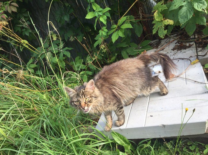 -Мяу!-жалобно доносится у меня со спины. Я оборачиваюсь и вижу, как под калиткой пролезает кошка. Обычная брошенная кошка. На забор по всему периметру натянута сетка, а внизу лежат доски, чтобы наши коты не могли пролезть за участок и стать обедом бродячих собак.