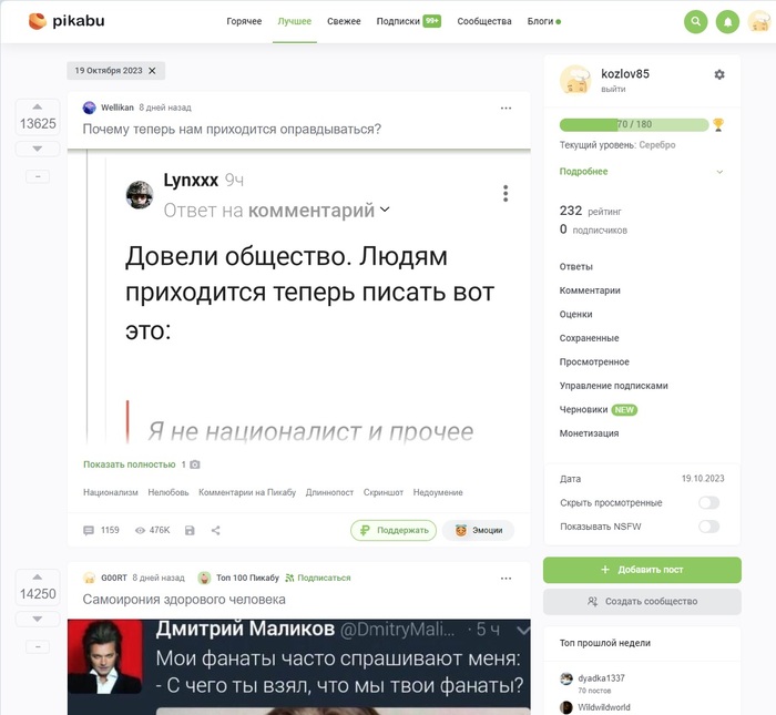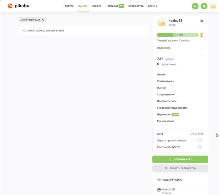 Нет постов в категории "Лучшее" после 20 октября 2023.