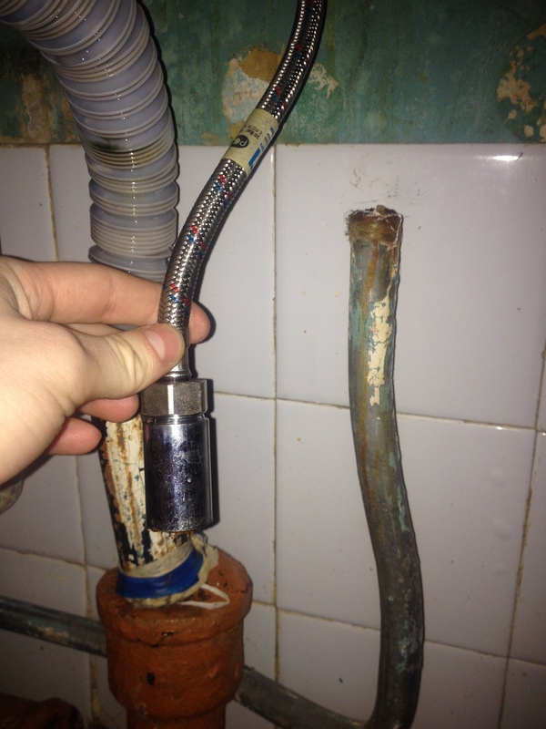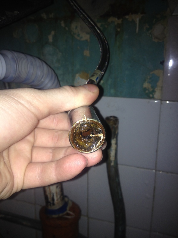Добрый день, пикабушники. Взываю к силе лиги юристов и просто знающих людей. Случилась у нас неприятность - а если точнее, сорвало шланг холодной воды, отходящий от трубы к крану. Причем сорвало не с резьбы, а вместе с резьбой (фото прилагаю).