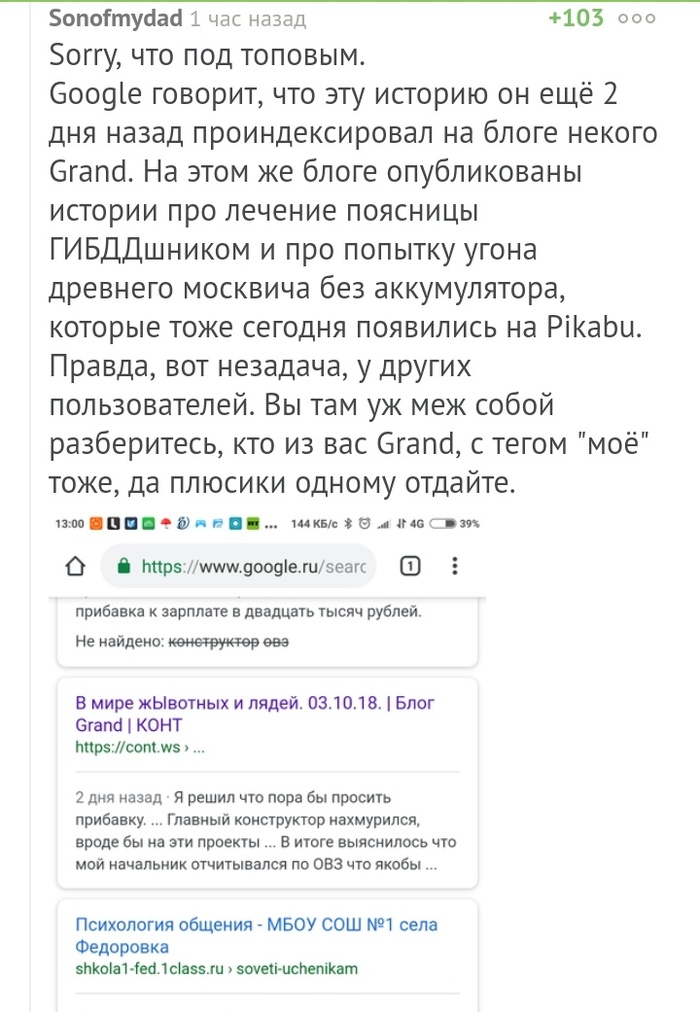 В общем пришел, сказал что последние полтора года я выполняю большой объем работ, и хотелось бы прибавки. Он удивился, сказал что вроде же тебя дополнительной работой не загружаем. Я перечислил системы которые разработал и что несколько раз даже в субботу приходилось выйти чтобы успеть. Он залез в электронный архив и говорит, точно ты разрабатывал? Тут в разработчиках написан Пидоркин, а ты не Пидоркин. Я объяснил что мой начальник дал указание разработать, а чтобы я не бегал согласовывать, записали его фамилию. Главный конструктор нахмурился, вроде бы на эти проекты оформляли ОВЗ (особо важное задание, они оплачиваются отдельно). Позвонил моему начальнику, сказал чтоб срочно шел к нему.