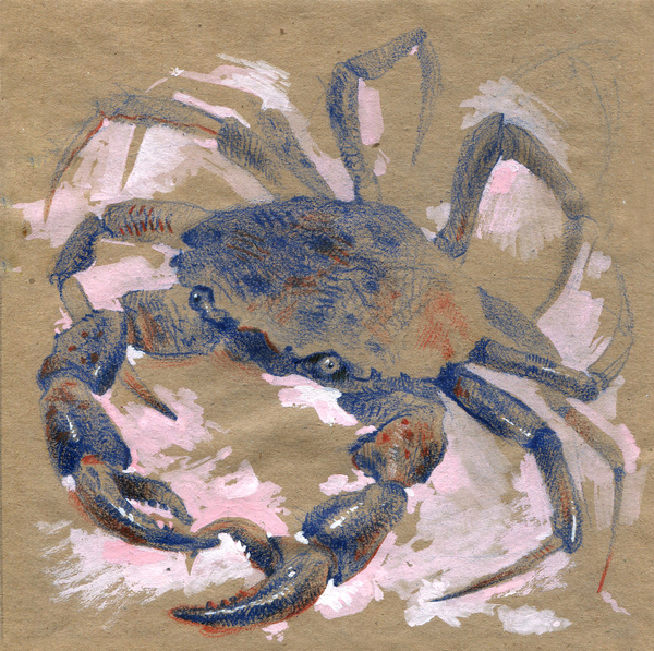 И напоследок, первый опыт рисовать акварелью вместе с цветными карандашами.