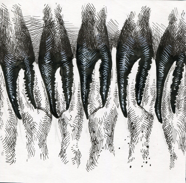 После того, как зарисовка сделана, а изображение отсканировано, приступаем к самой муторной для меня лично части. Прямо поверх рисунка, но на другом слое конечно, аккуратно и прилежно обводим все, пока не получится хороший линейный рисунок. На мной взгляд такого уровня аккуратности нам хватит)