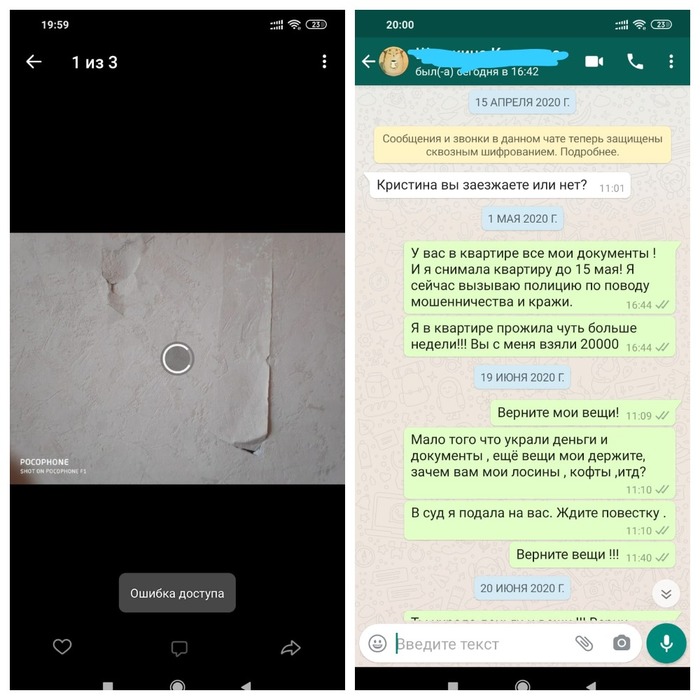 Алиллуя, через две недели по закону мне можно было выходить, я решила перевезти большие сумки, в квартире оставались летние вещи и все документы. Вернувшись в квартиру через день, я обнаружила, что замки поменяны, и в квартиру я попасть не могу. Звонки на оба номера она сбрасывала, в соцсетях во всех, от вотсапа до вк я была забанена