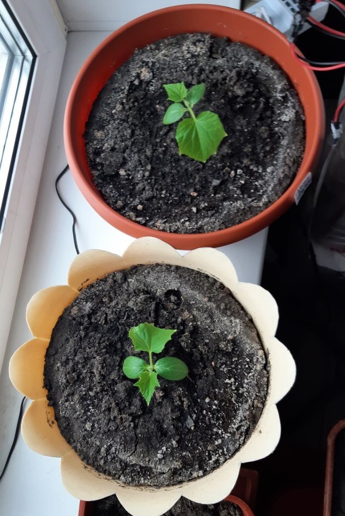 Огурцы за это время выпустили 4 листа и пятый с шестым уже готовы отрасти.
