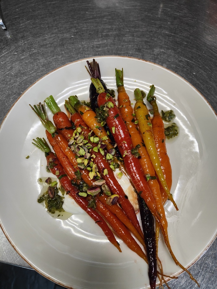 Карамелизованная Молодая морковь с домашним мацони и фисташкой