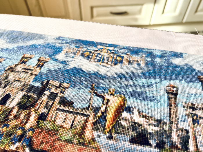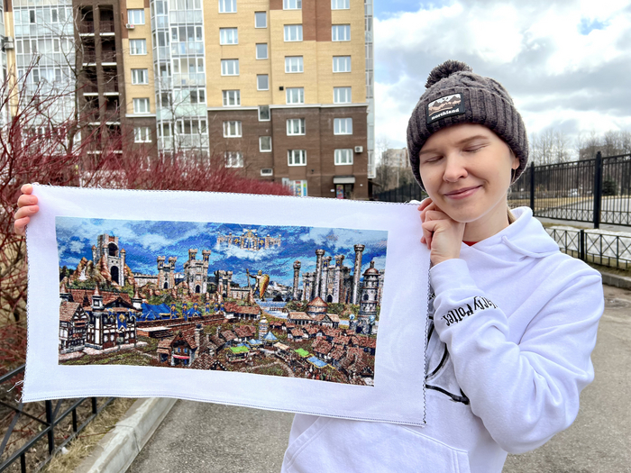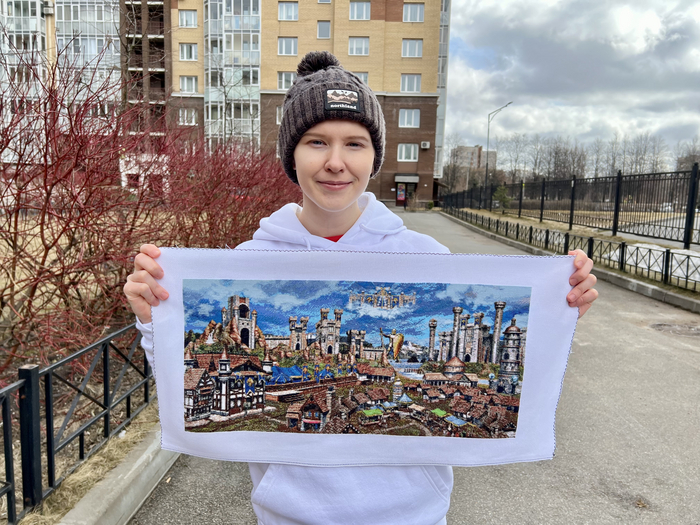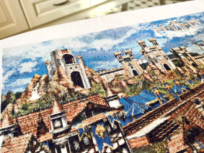 Это мой любимым замок с детства! Любила играть добрыми фракциями, в мечтах вышить еще одну работу, а именно Оплот... Я очень рада, что за 7 месяцев я это сделала.