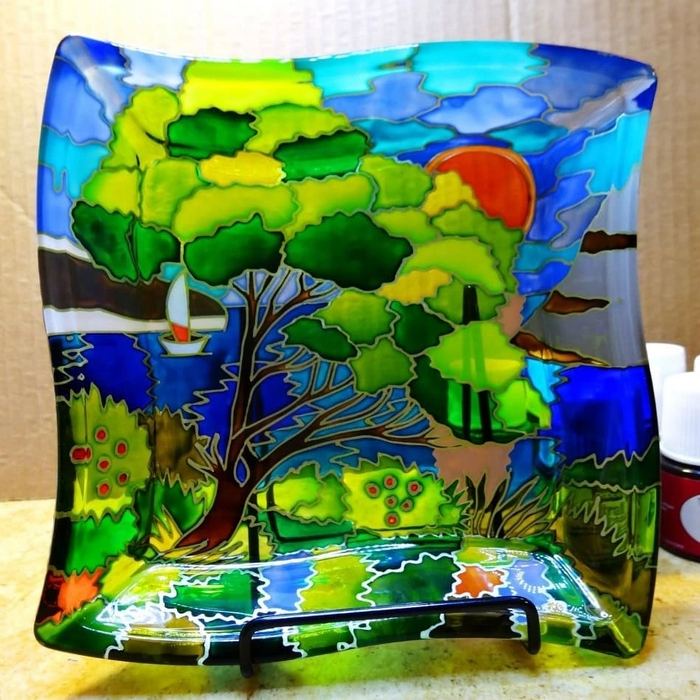 Меня зовут Ксения , живу в г. Санкт-Петербурге. После долгого нахождения в этом городе захотелось разбавить серую гамму яркими цветами и наполнить светом!🎨🎇Это и привело к витражной росписи стекла , которая включает в себя широкую палитру и прозрачность , дает свет✨ и волшебство 🪄. Более 15-ти лет занимаюсь росписью изделий из стекла и хрусталя (посуда , предметы интерьера, светильники , зеркала и окна).