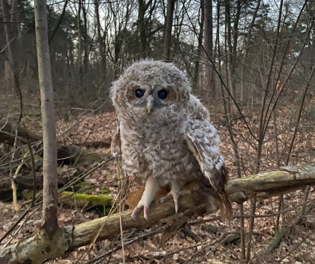 А это совиный слёток, то есть птенец, который ещё не научился летать, но уже покинул гнездо. Если вы встретите такого в лесу, то не надо его трогать и "спасать". Во-первых, помощь ему не нужна, он окрепнет и окончательно повзрослеет. Во-вторых, его родители где-то рядом и периодически кормят его. Если вы приблизитесь к нему близко или возьмёте в руки, то родители могут напасть на вас и ударить когтями прямо в затылок.