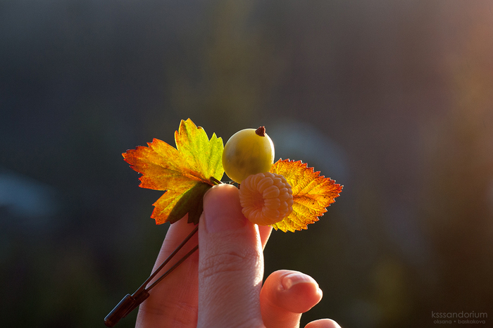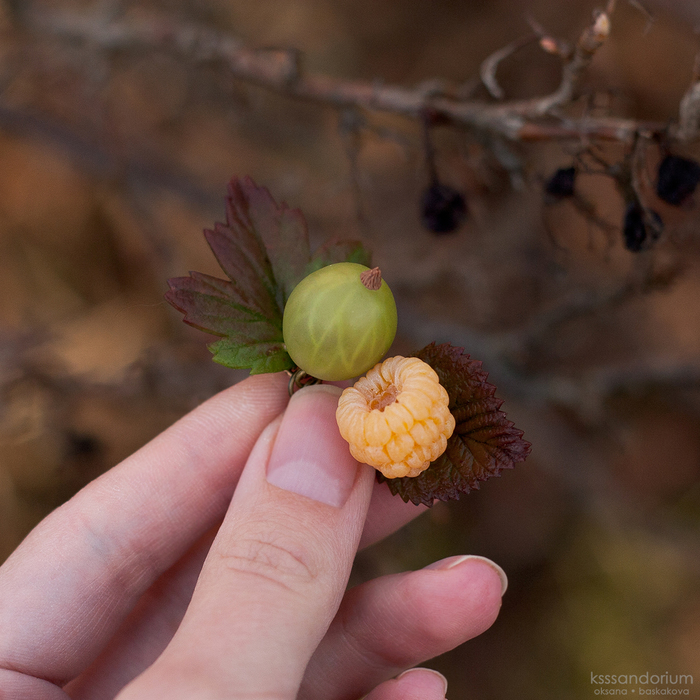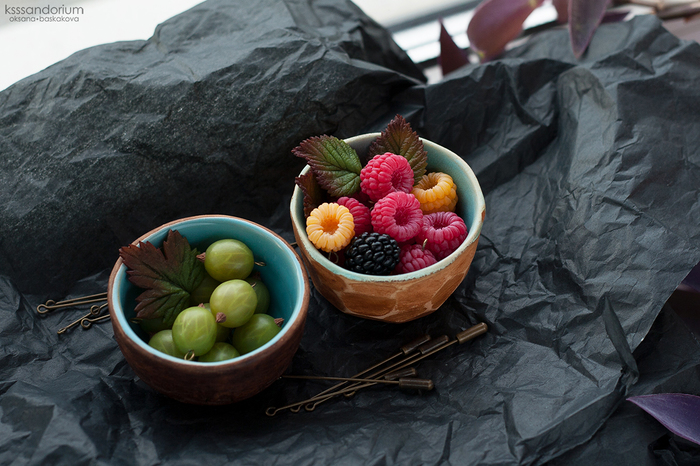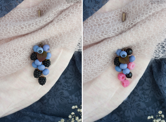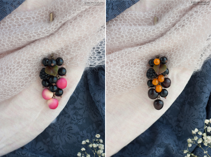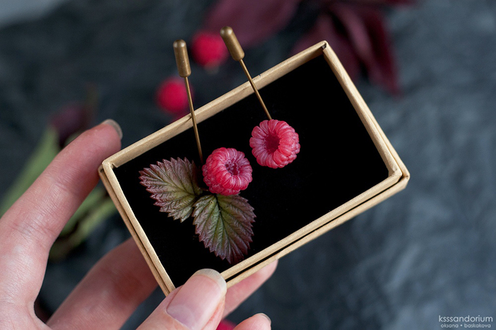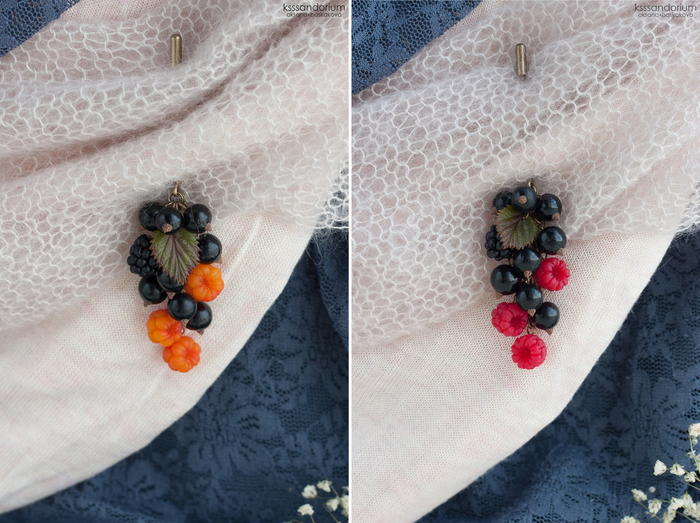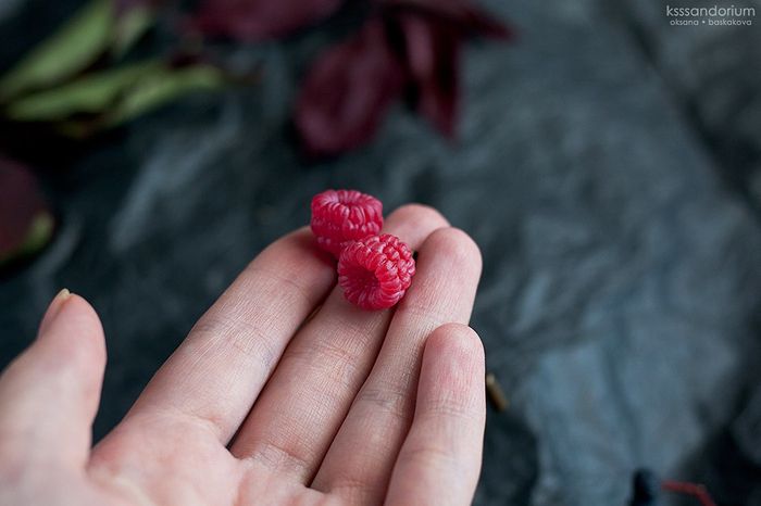 Несколько недель назад я уже показывала первые эксперименты над малиной для брошек.
