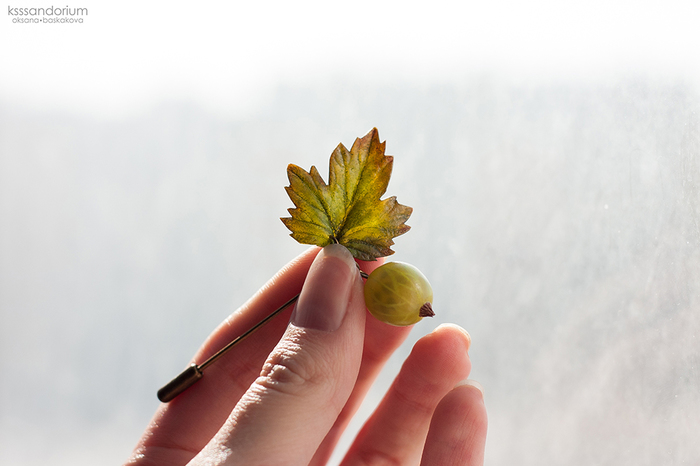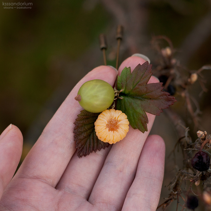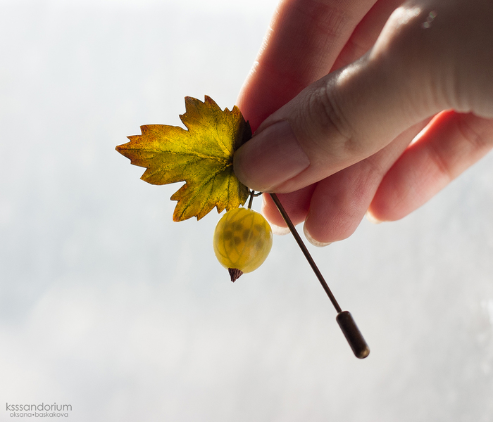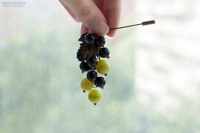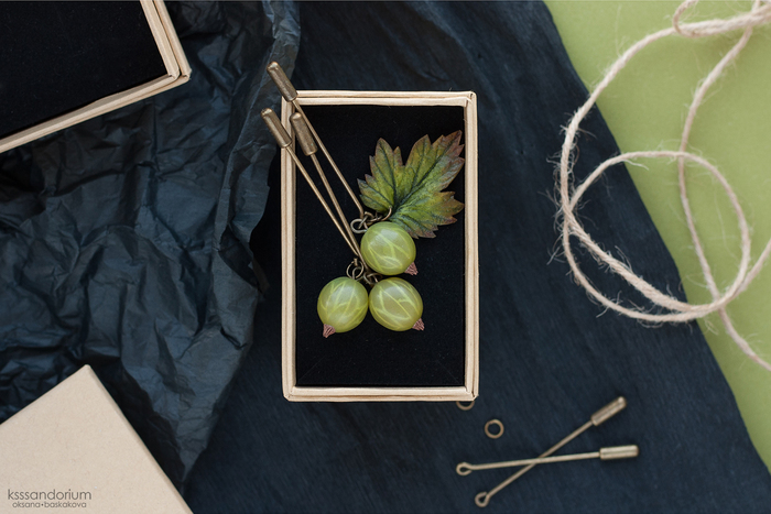 Броши с ягодами крыжовника и смородины. 🌿🌾