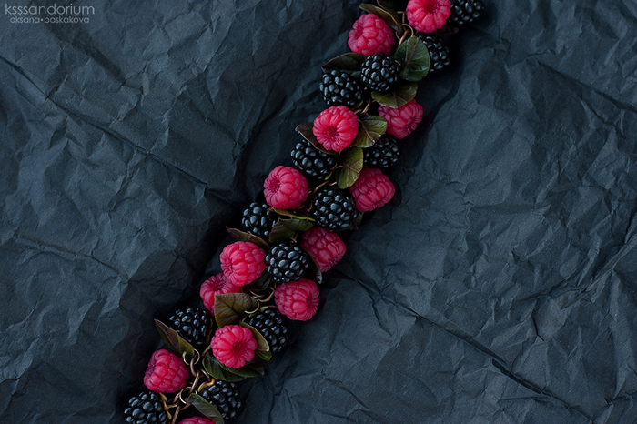 Малина и морошка в более светлых сочетаниях - с голубичкой.