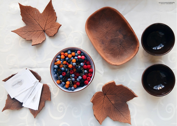 И любимейшая молоченая керамика с отпечатками листьев от Саши Золотаревой.