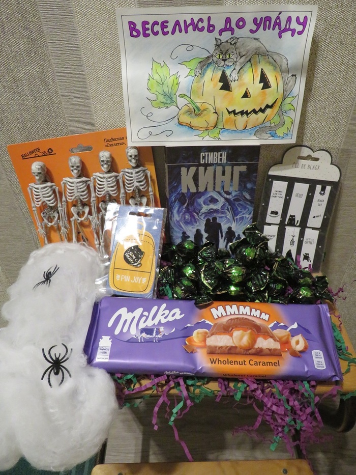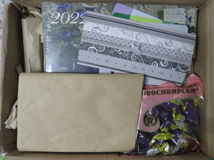 В этом году в обмене от Миррочки пришла замечательная посылка из Новосибирска от @MizziKlimt. К сожалению имени не знаю, на адресе были только инициалы. Получать посылки на почте у нас сейчас непросто. Посылка пришла на дальнюю почту, а там нет электронных талончиков, живая очередь. Народу тьма. Постоянно разборки кто за кем стоял. Кто-то не выдерживает и уходит, тогда ещё больше путаницы с порядком очереди. Плюс периодически подходят те, кто по времени записывался. Но тут выбора нет, это послать посыль можно из любого отделения, а получать только оттуда, куда пришло. Я терпеливо дождалась и всё получила.