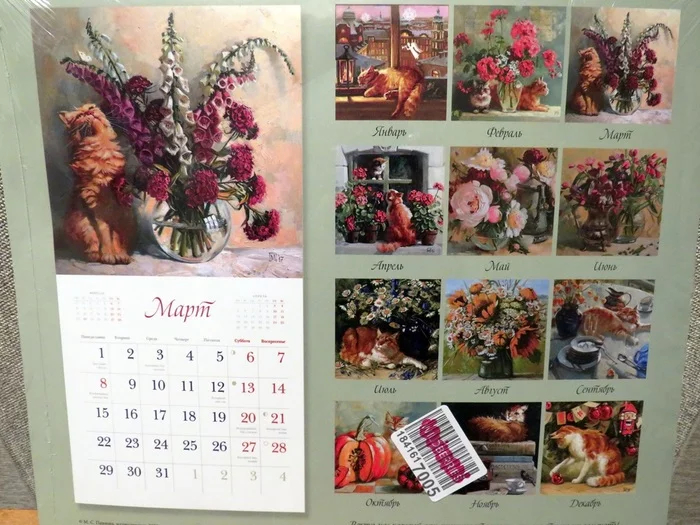 А вот с календарём прямо мистика какая-то. В прошлом году в обмене от Миррочки получила от Никиты @lonise1337 календарь на 2021 год "В ожидании чудес" с чудесными картинами цветов и котов