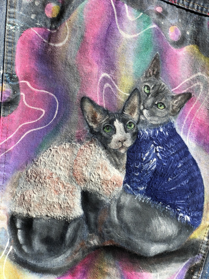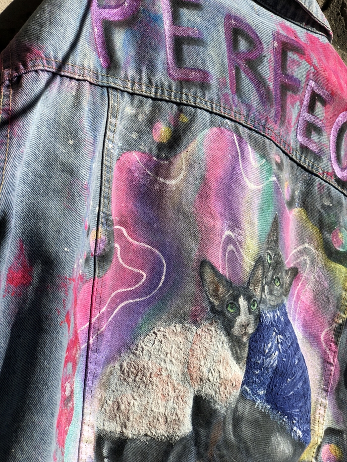 На джинсовке я хотела дополнить классический чб портрет интересными элементами для яркости ✨