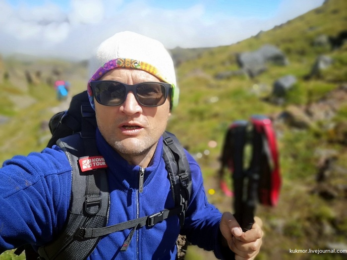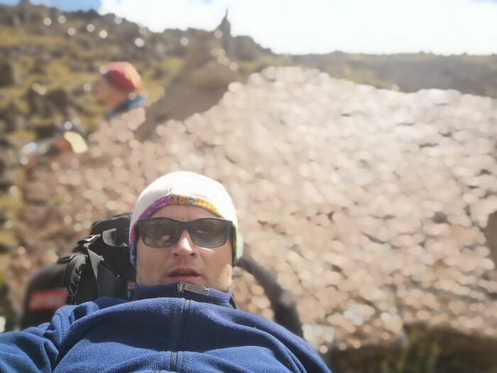 Наверно после фотографии со штангой на 3750м, уже никто не поверит, что после того, как мы туда забрались, меня сильно штормило. На еду я даже смотреть не мог, поел шоколадных конфет, попил сладкого чая с лимоном и через 1,5 часа бодрячком пошёл вниз.