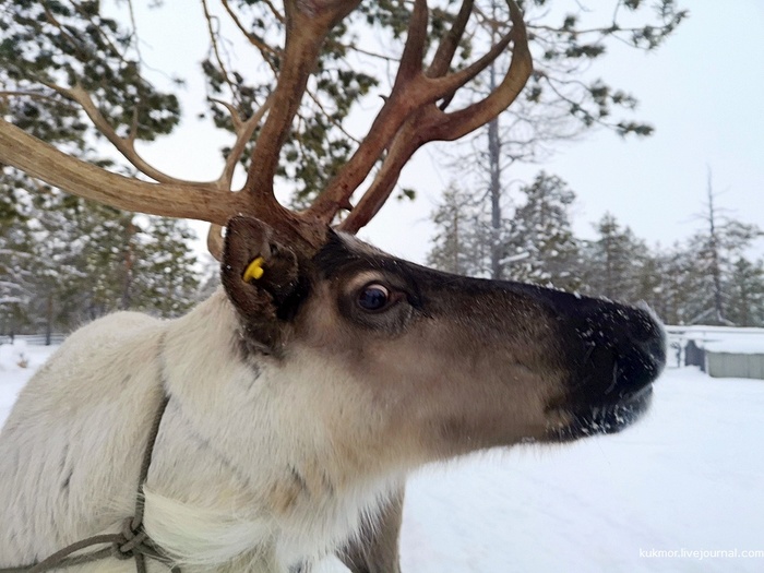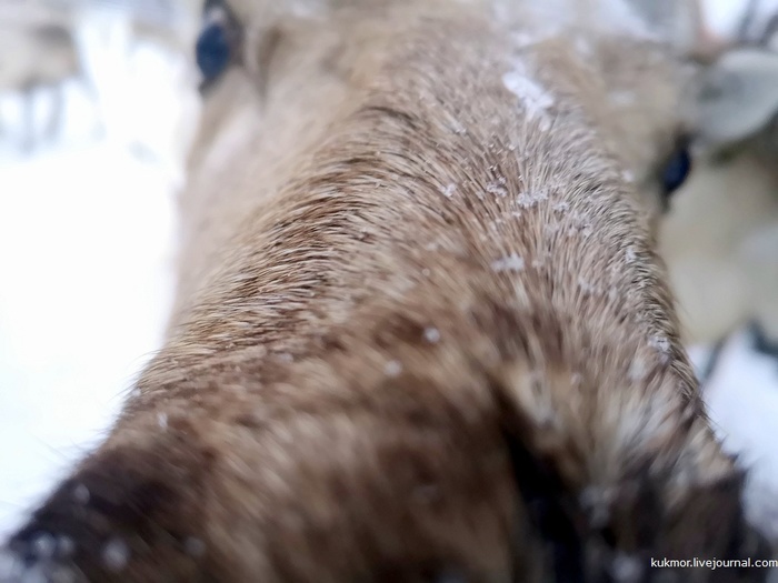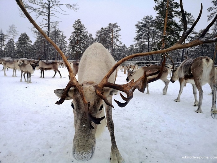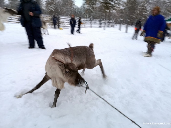 А этого только начинают приручать, для этого надолго привязывают к дереву у дома, через некоторое время станет смирным и сможет возить нарты.