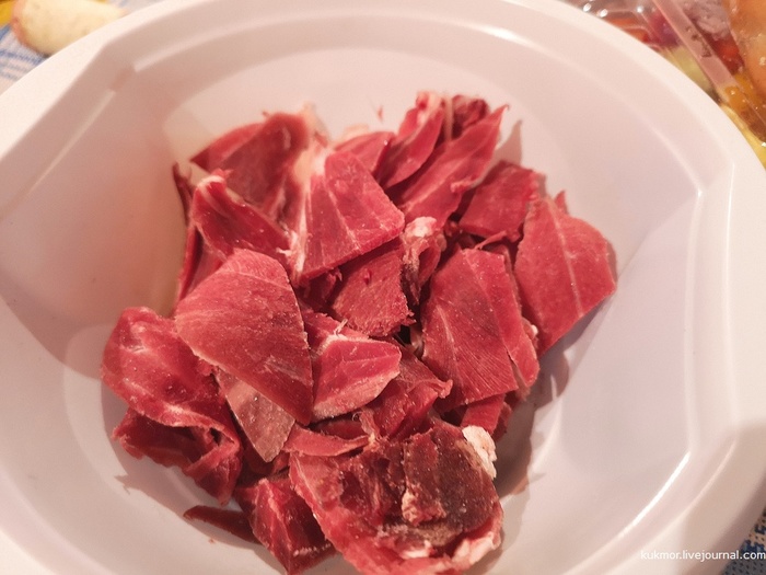 Строганина из мороженного мяса.