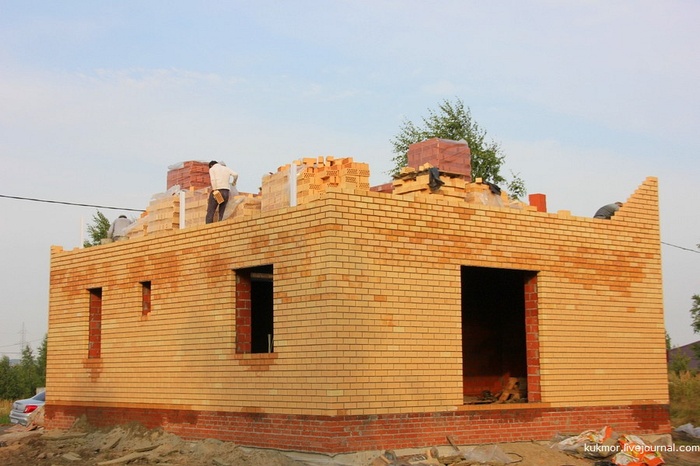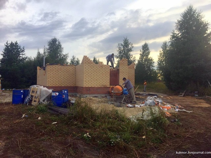 К тому же на стройке происходило всё то же возведение стен первого этажа. И вот позавчера капитальные стены первого этажа и проемы для окон и дверей были доделаны.