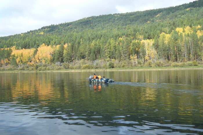 Также в один из дней мы как обычно приехали на участок работ (а он в часе плавания на лодке от посёлка) и наша лодочка сдохла. Обратно смогли добраться, плывя по течению и маневрируя рогатинами, но лодку всё-таки пришлось заменить, пока наша была в ремонте.