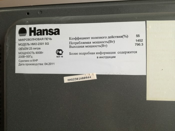 верю в силу пикабу. Один раз помогли найти книгу. Помогите найти инструкцию к микроволновке hansa HMO-2301 SG. В интернете нет, сайт производителя говорит что они такую модель не выпускали(интересно да?). Выпускалась данная модель для сетевых магазинов. Ну тут вообще интересно. Может у кого дома, у знакомых есть такая, и сохранилась инструкция?
