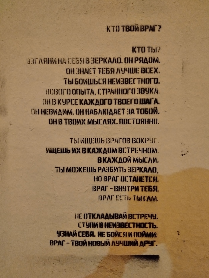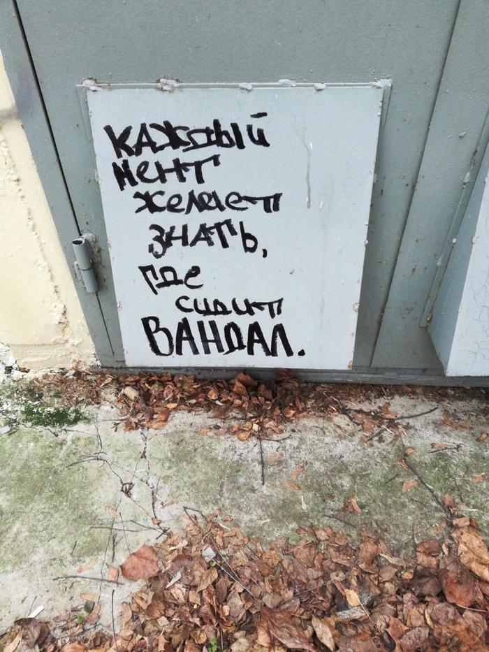 20 kulturnyi.vandal И еще одна подборка надписей на стенах 6 лет назад В этом посте не будет рекламы нашей инсты и телеги. Показать полностью 15 [моё] Культура Вандализм Длиннопост