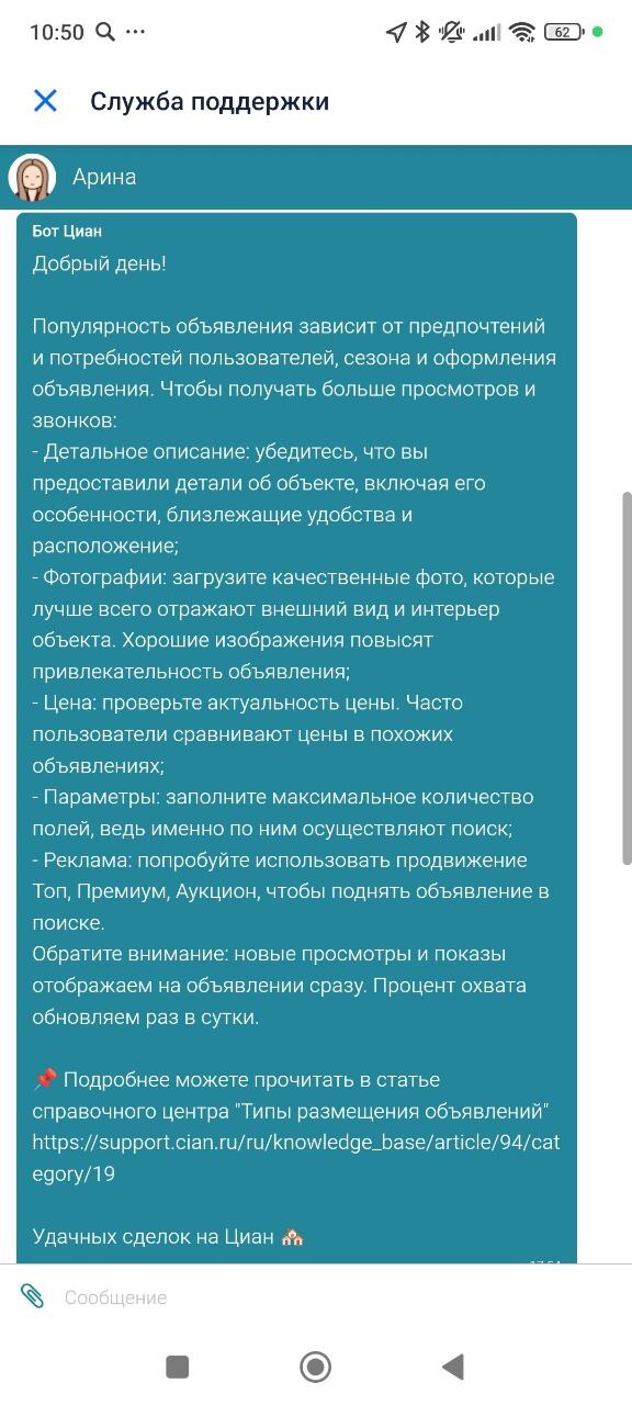 Пишу в поддержку. Там мне сначала прилетает абсолютно бесполезная отписка от бота.