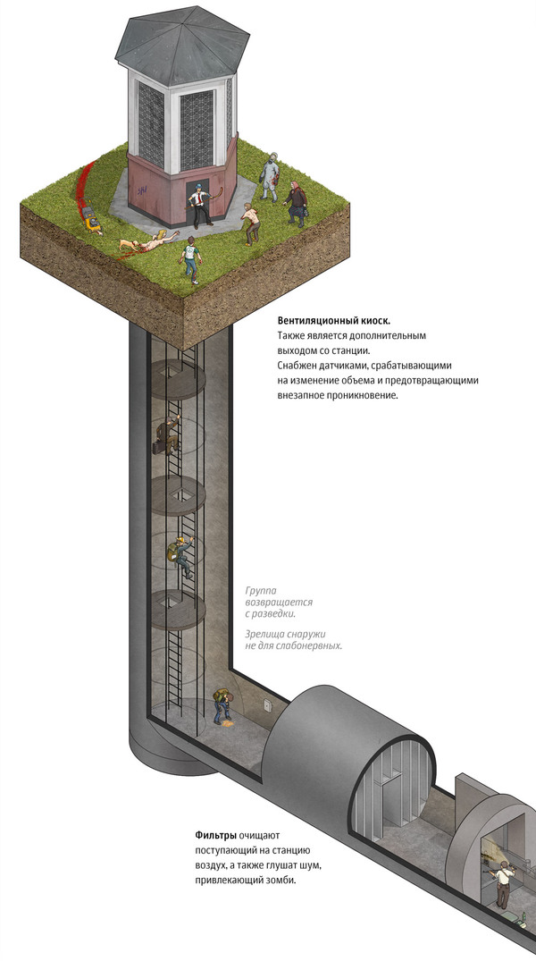 После войны новые станции метрополитенов СССР проектируют с учётом возможного использования потенциальным противником оружия массового поражения: атомного, химического и бактериологического. Также вентиляционные шахты оборудуются фильтрами. В случае эпидемии зомби-вируса станция метро может служить надежной защитой для уцелевших в течении долгого времени.