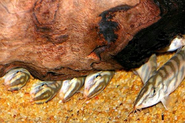 Что касается прятаться, то это настоящие специалисты, которые могут залезть в очень узкие щели. Иногда они там и застревают, так что не ленитесь пересчитывать рыб и проверять не пропала ли какая. Любой аквариум с боциями должен быть богат на укрытия, чтобы они чувствовали себя в безопасности. Особенно они любят узкие места, в которые трудно протиснутся, например, можно использовать для этого трубки как из керамики так и из пластика.