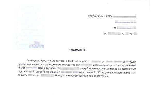 — копию уведомления для КСК о проведении оценки;