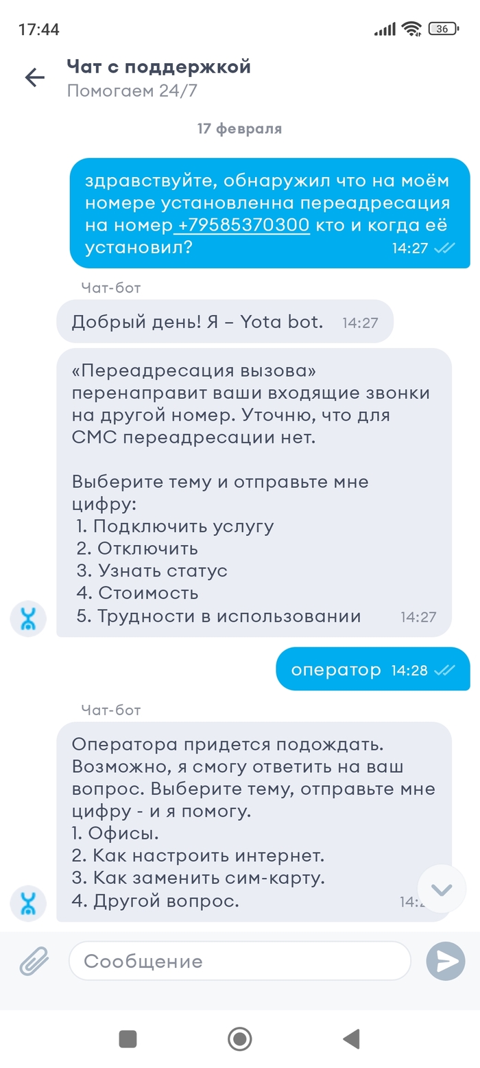 Дополняю пост скриншотами чата с йотой с другого телефона где они заявляют что это не их номер