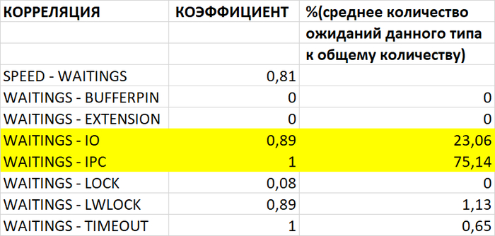 1. Рост ожиданий (WAITINGS) в PostgreSQL коррелирует с: