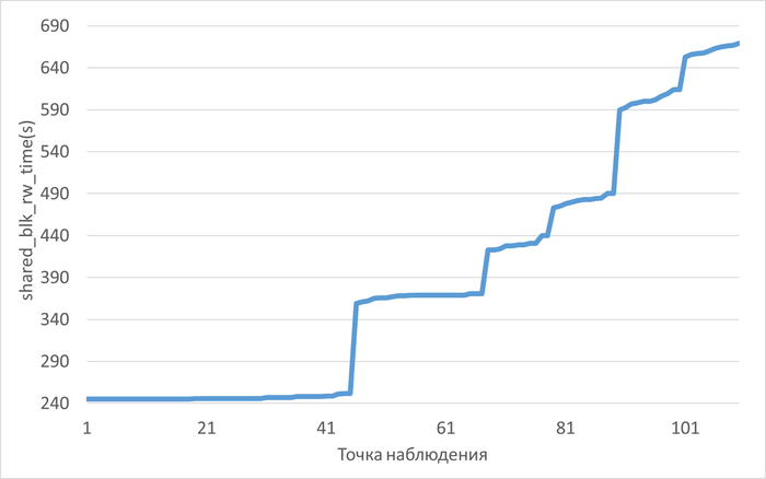 Критически низкий hit ratio shared buffers (55-58%), указывающий на недостаточный объём оперативной памяти для данной рабочей нагрузки.