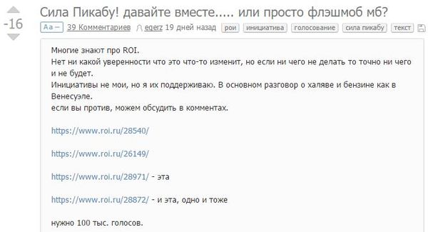 Но будем честны с собой и скажем, что в последний раз заходили туда никогда очень давно (кто напишет комментарий "а я постоянно захожу и голосую" тот наверняка пиздит получит много плюсов). А значит, уровень нашей общественной инициативы находится примерно на уровне рейтинга @apres,