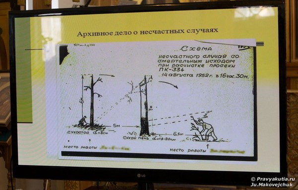 В лагерях очень плохо была поставлена техника безопасности. Несчастные случаи на производстве не были редкостью. Когда о несчастном случае становилось известно выше — лагерного начальства (на уровне ГЛАВКа или министерства), создавалась комиссия по расследованию. Рисовалась подробная схема произошедшего, записывался акт. Такие документы – явление редкое, находка для историка.