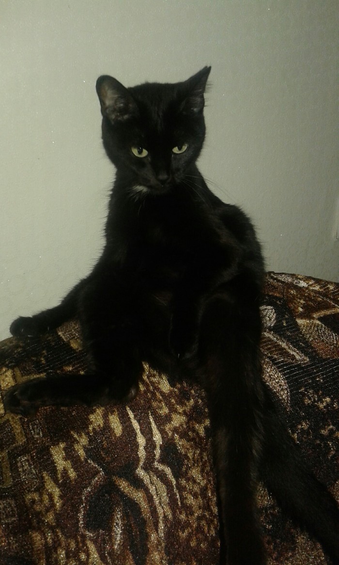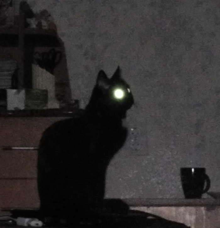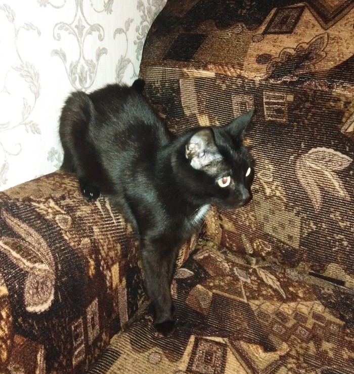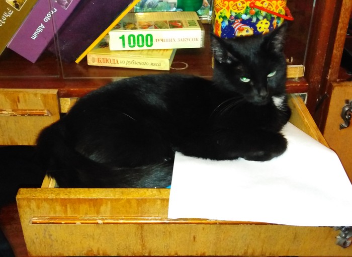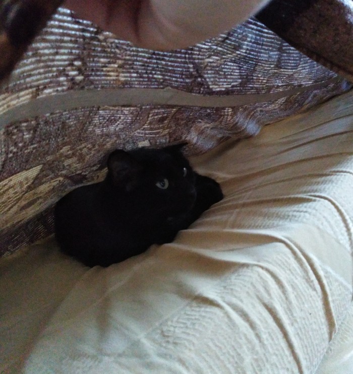 Приезжал в гости шестилетний племянник. Кошка, за редким исключением, обитала на шкафу. Мне кажется, была бы у неё возможность - и ела, и в туалет ходила бы там же. Если не на шкафу, то так: