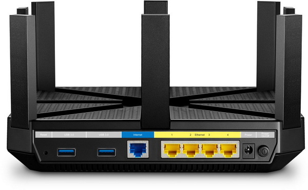Для подключения сетевых принтеров и внешних накопителей на маршрутизаторе предусмотрено 2 порта USB 3.0. В случае необходимости возможна организация проводных подключений при помощи четырёх гигабитных портов Gigabit Ethernet и одного WAN-порта. Проверку состояния сети и настройку параметров маршрутизатора можно осуществить, используя специальное приложение TP-Link Teher для мобильных устройств на базе IOS или Android.